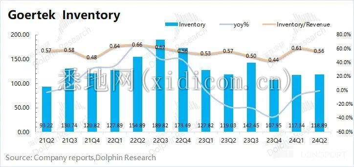 ②存货:歌尔股份 2024 年第二季度存货 118.9 亿元,同比下滑 0.1%。从存货/营业收入指标看,歌尔股份本季度为 0.56,保持相对平稳。