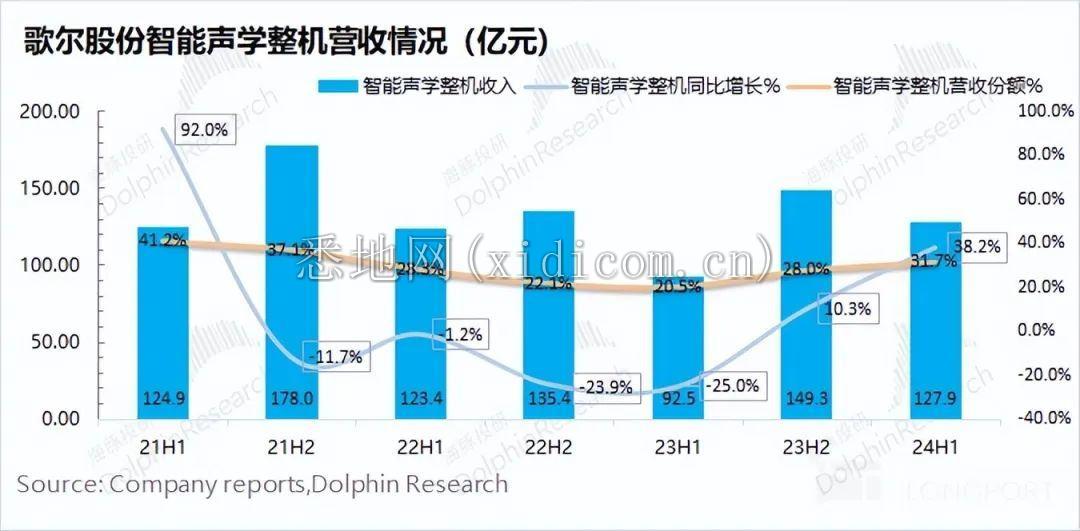 歌尔股份智能声学整机业务 2024 年上半年实现收入 128 亿元,同比增长 38.2%。歌尔股份的智能声学整机业务主要仍是以苹果及安卓厂商的 TWS 产品为主。