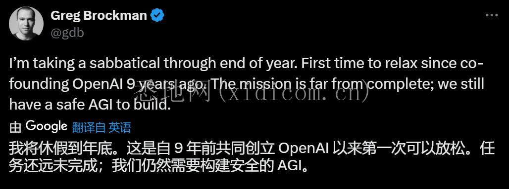 Greg Brockman大家应该很熟悉了,被誉为“OpenAI的总设计”,也是公司总裁,前几次OpenAI陷入舆论危机,他都站出来坚定不移的支持阿尔特曼,这次据报道Greg Brockman称自己将休假到年底。