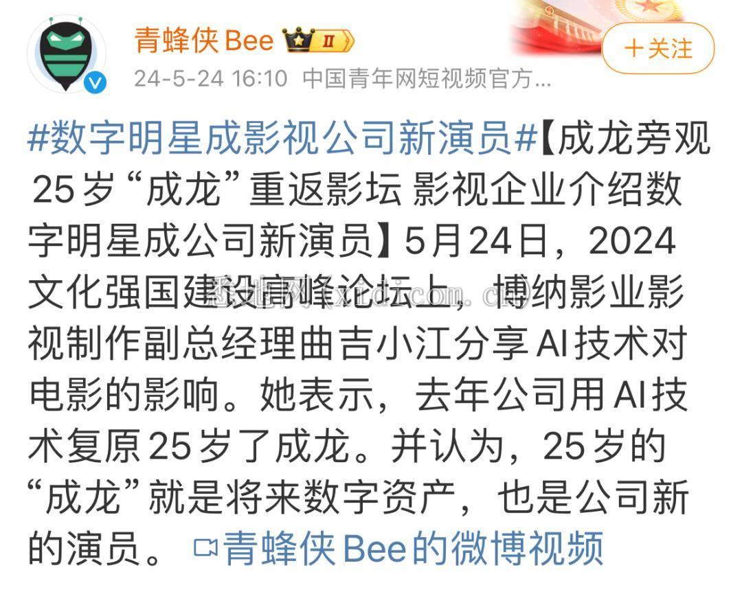 如此,尽管真人主演一时半会不太会被取代,毕竟AI成龙匍匐在前。但其他工作机会可能会被压缩,例如真人到场可改为肖像授权。