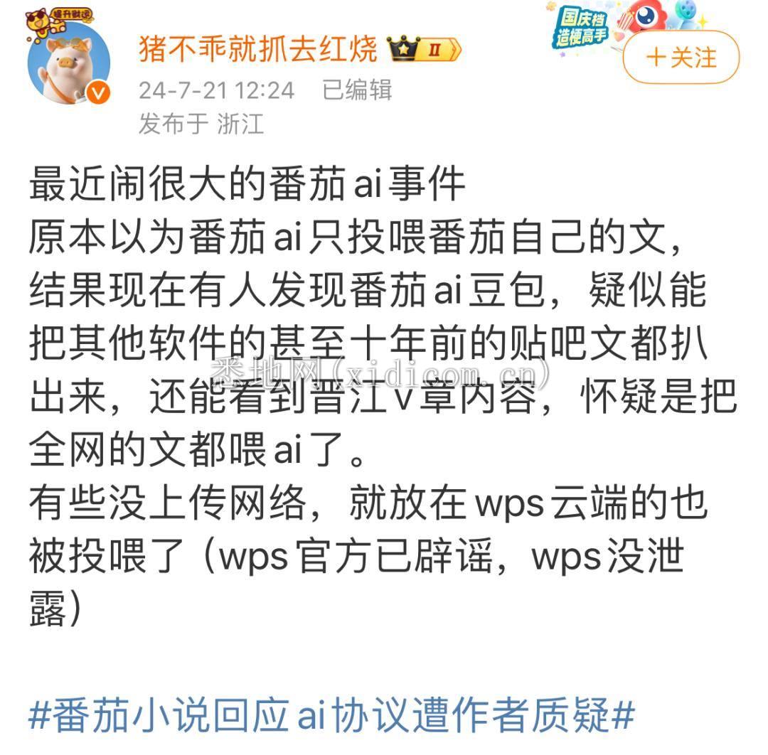浅做一下事件回顾。今年6月,就有番茄小说作者发帖表示,收到了平台的一份“AI训练补充协议”,其中提到,平台有权将签约作品的“作品全部/部分内容及相关信息”用于包括AI人工智能模型训练在内的新开发技术研发/应用领域,并且乙方不得因此主张侵权。