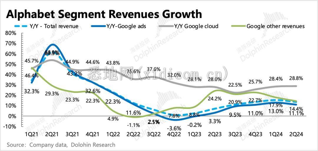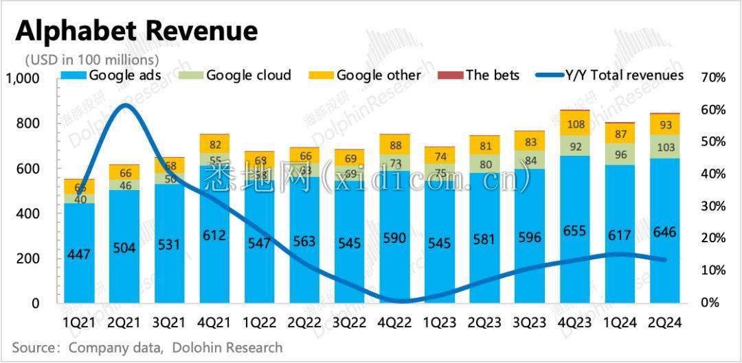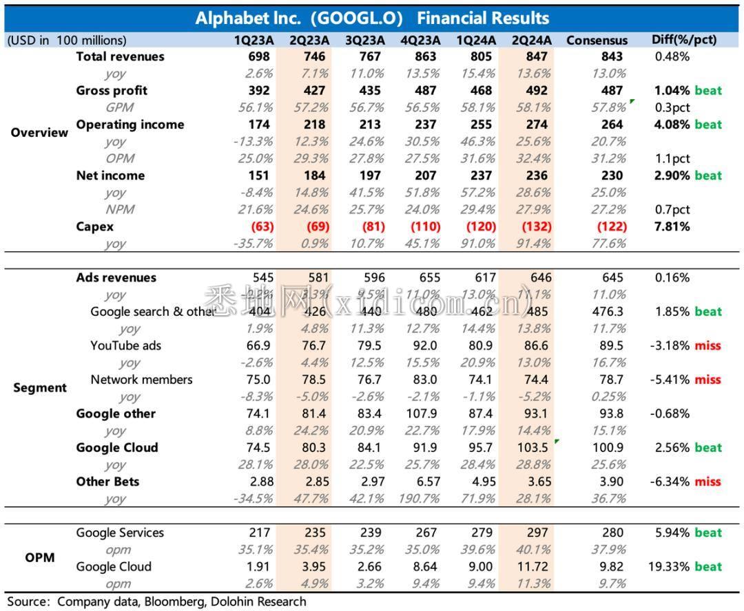 二季度谷歌整体营收847亿,同比增长13.6%,基本符合市场一致预期。
