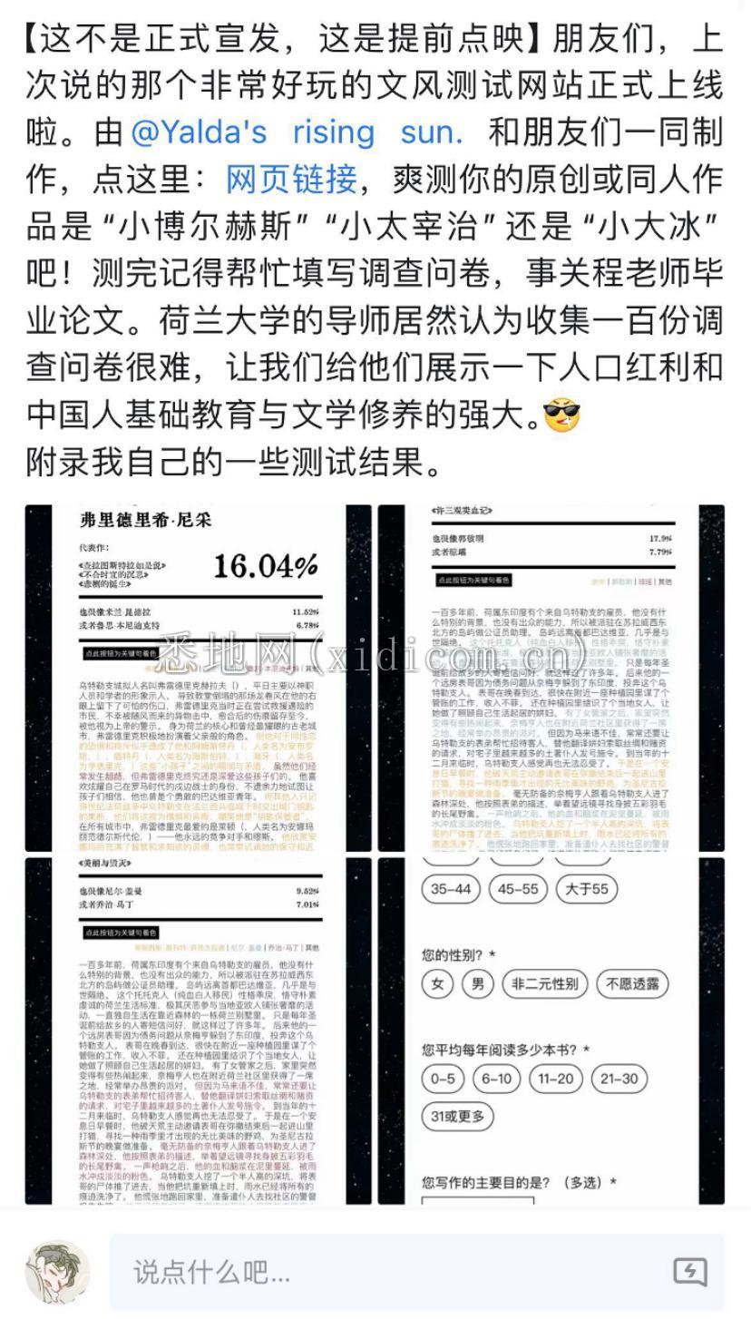紧接着,以QQ为圆心,流量开始向小红书、豆瓣、微博四面八方迸发。其中流量承接效果最好的是小红书。Ankie团队把文风测试排名前三的结果纳入了统计,截至目前,网站累计产生了约200万个测试结果。仅小红书一个平台就贡献了300多万的浏览量,转发和讨论热度居高不下。