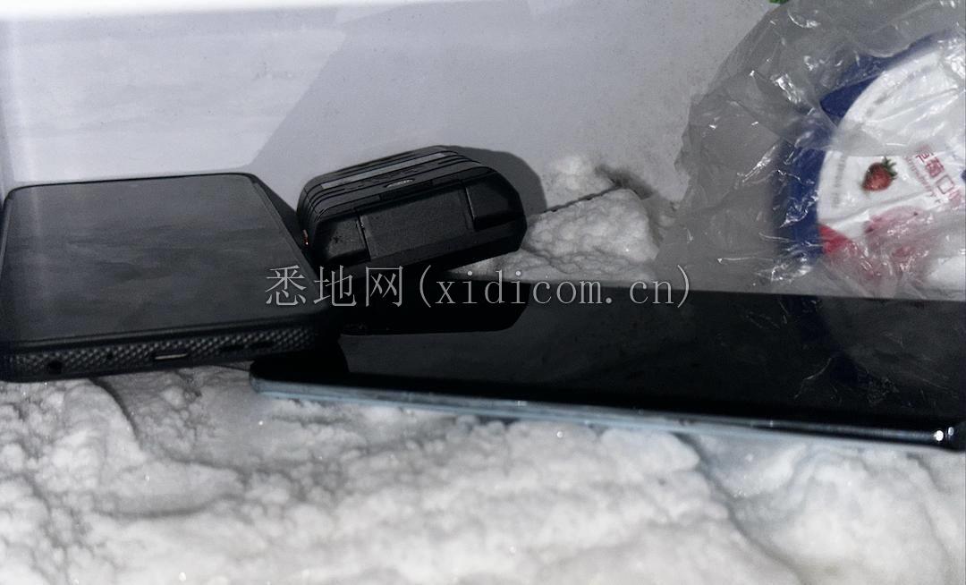 考虑到这是只测试的开始,对这三台手机也较为「仁慈」:直接把三台手机在冰箱冰格里放了 7 个小时,用冰格来模拟国内常见的低温环境,给三台手机来了一个「透心凉」。