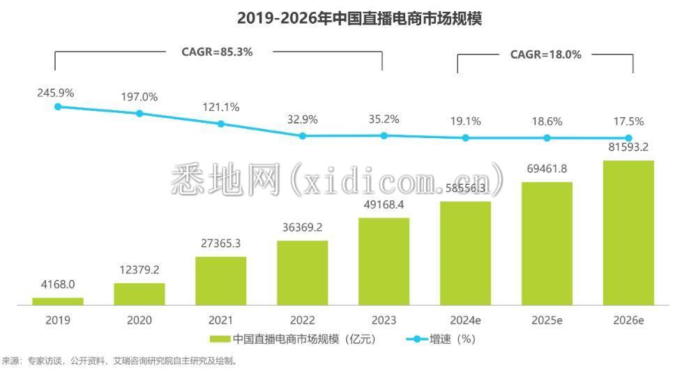 据艾瑞咨询刚刚发布的《2023年中国直播电商行业研究报告》显示,2023年,我国直播电商市场规模高达4.9万亿人民币,增速达到35.2%,并预测未来三年还将保持18%的年复合增长率。100亿,甚至比不过头部达人的年度GMV。