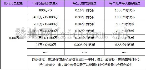 13年10月发布的时代币分配方案