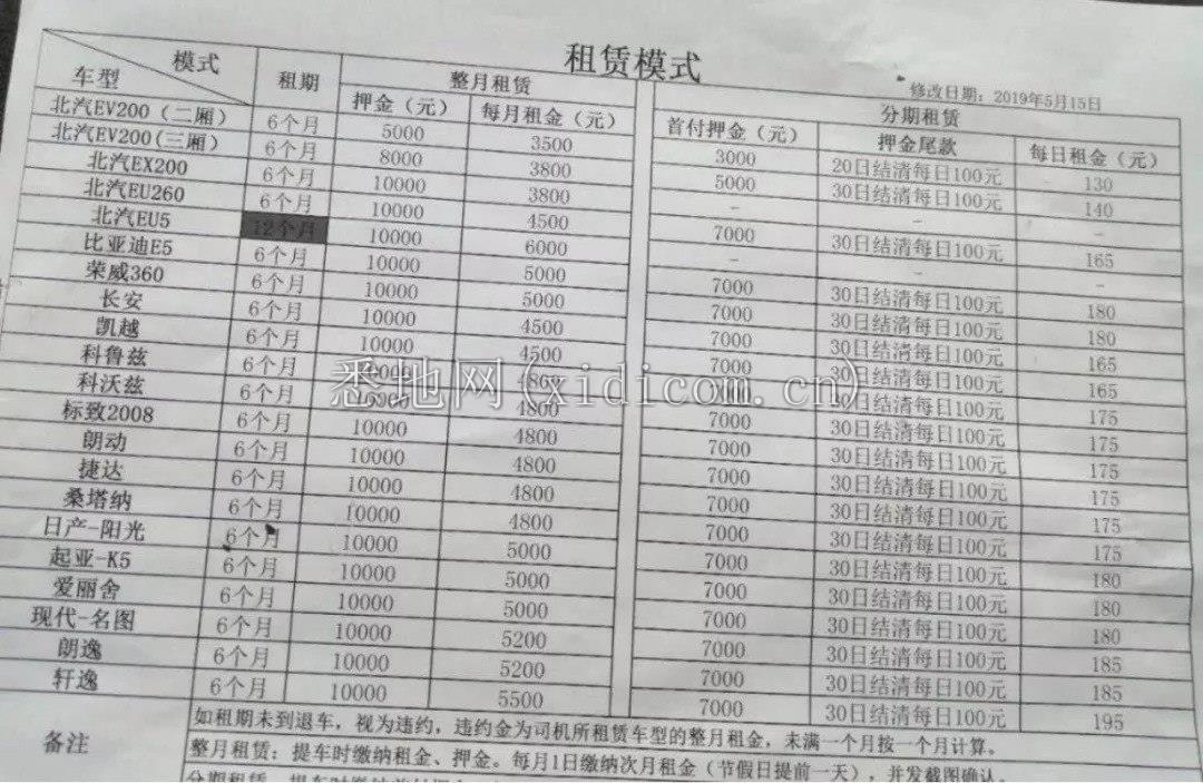 分期租赁适合手头紧的人,最少只需要缴纳3000元,就可以拿走一辆车跑滴滴,门槛极低。