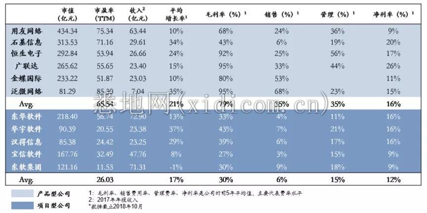 比较下来,产品型公司具有更高的毛利,这也为他们带来更好地资本市场认可(市盈率)。