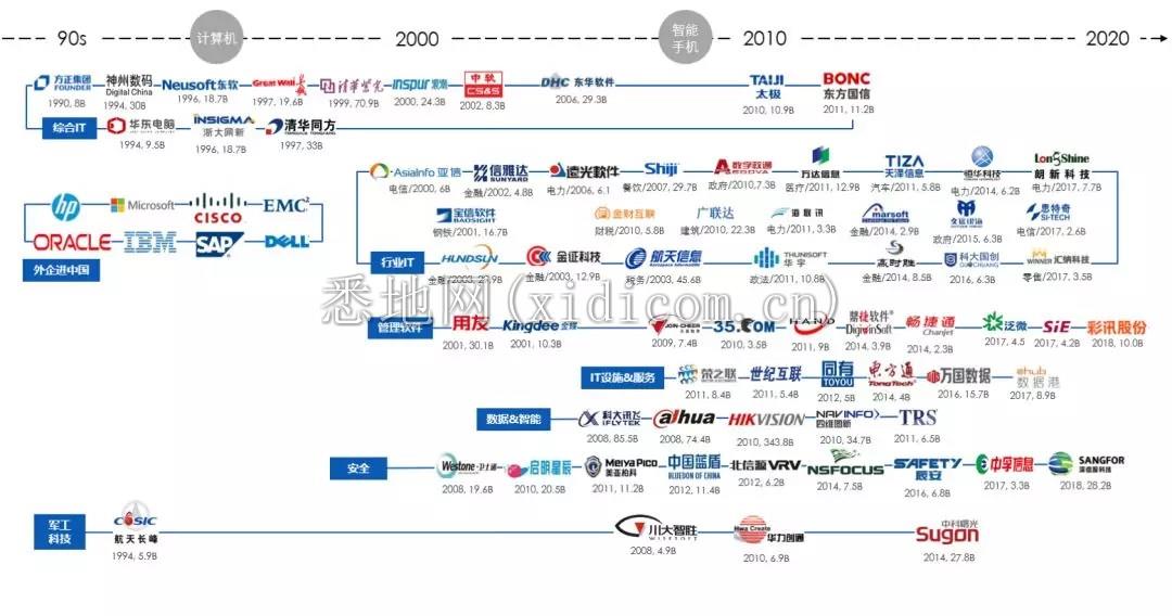 此外,研究中国科技公司上市公司发展历程图,以A股/港股科技软件类企业为主,表明: