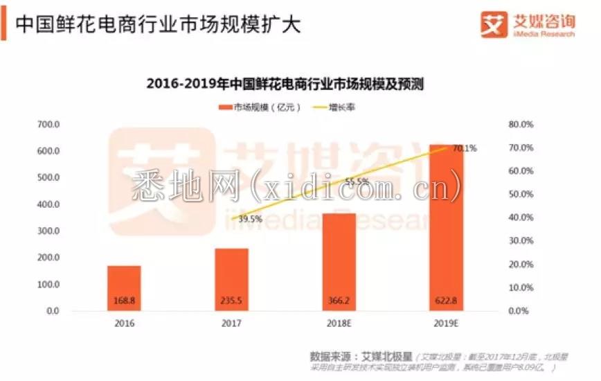 根据艾媒发布《2018中国鲜花电商行业及用户报告》显示,国内鲜花市场在过去一年里仍旧以线下交易为主,但鲜花电商的渗透率有持续走高的趋势。