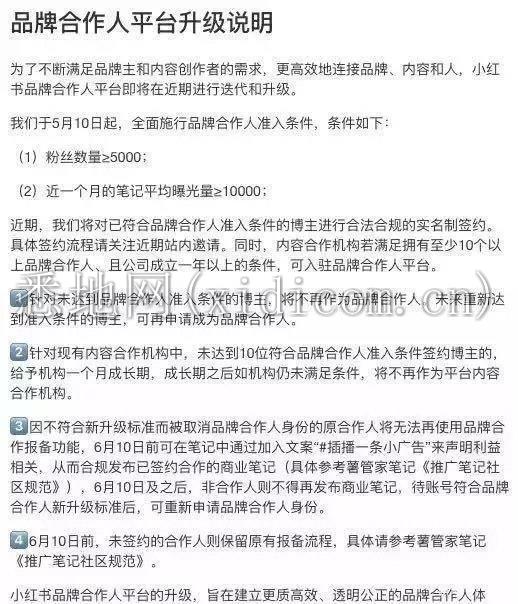 图为小红书对于品牌合作人的新规说明(部分)