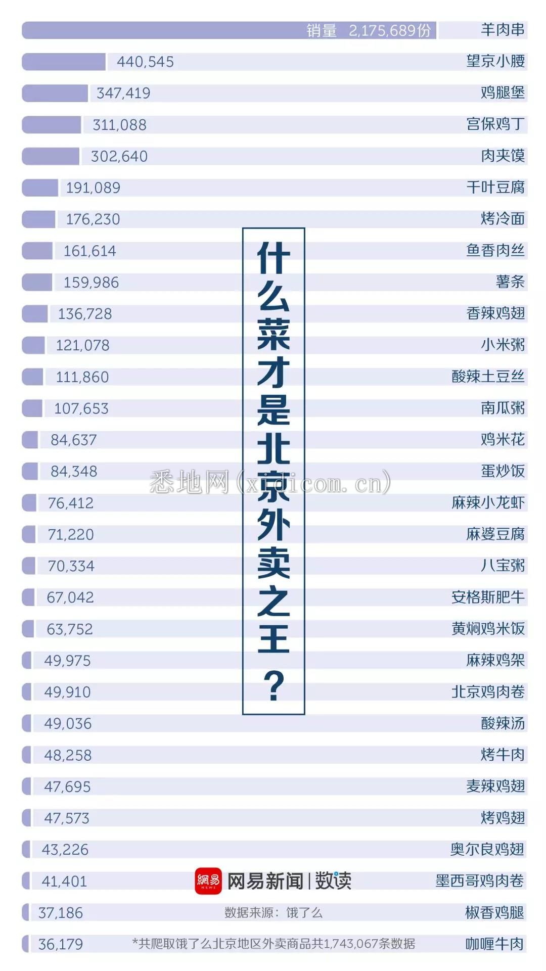 从外卖菜品销量来看,羊肉串是当之无愧的北京外卖之王,月销量多达217万份,同样是串,销量是第二名望京小腰的近五倍。