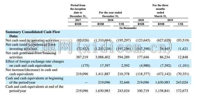 瑞幸咖啡目前尚不具备造血能力,经营活动所产生的现金流持续为负。在瑞幸咖啡的现金及等价物中,该公司仍是通过融资活动获取现金流——自2017年至2019年第一季度,通过融资形式共获得的资金约为44.61亿元。