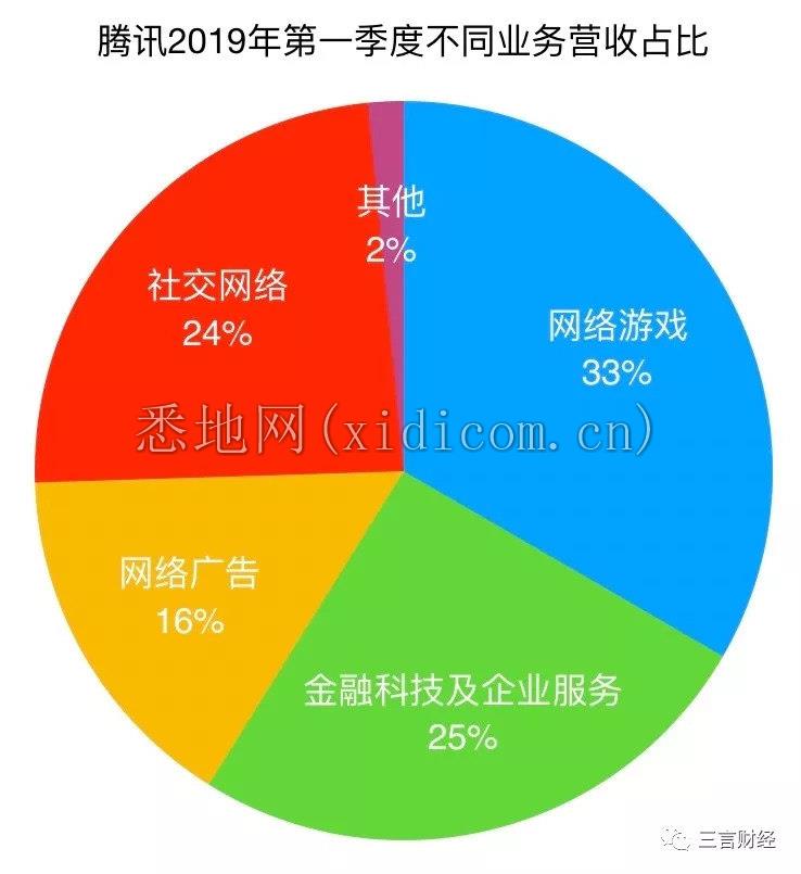 营收方面,腾讯今年一季度营收主要来自网络游戏、社交网络、金融科技和企业服务、网络广告几大分部构成。