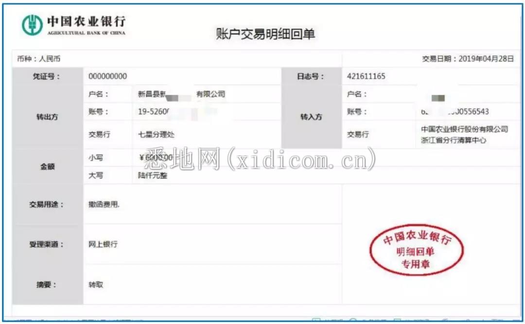 周到向田小鲁支付6000元赔偿的回单,图片来源:周到本人提供