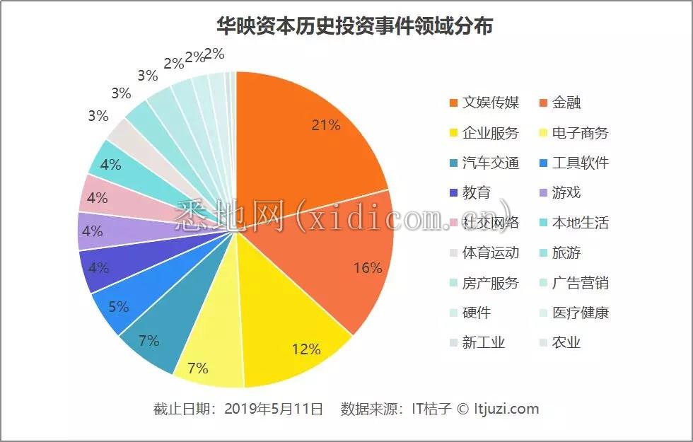 IT 桔子数据显示,华映资本有公开记录的投资事件中,文娱传媒领域共计 37 起,金融领域共计 28 起,企业服务 22 起,电子商务 13 起。
