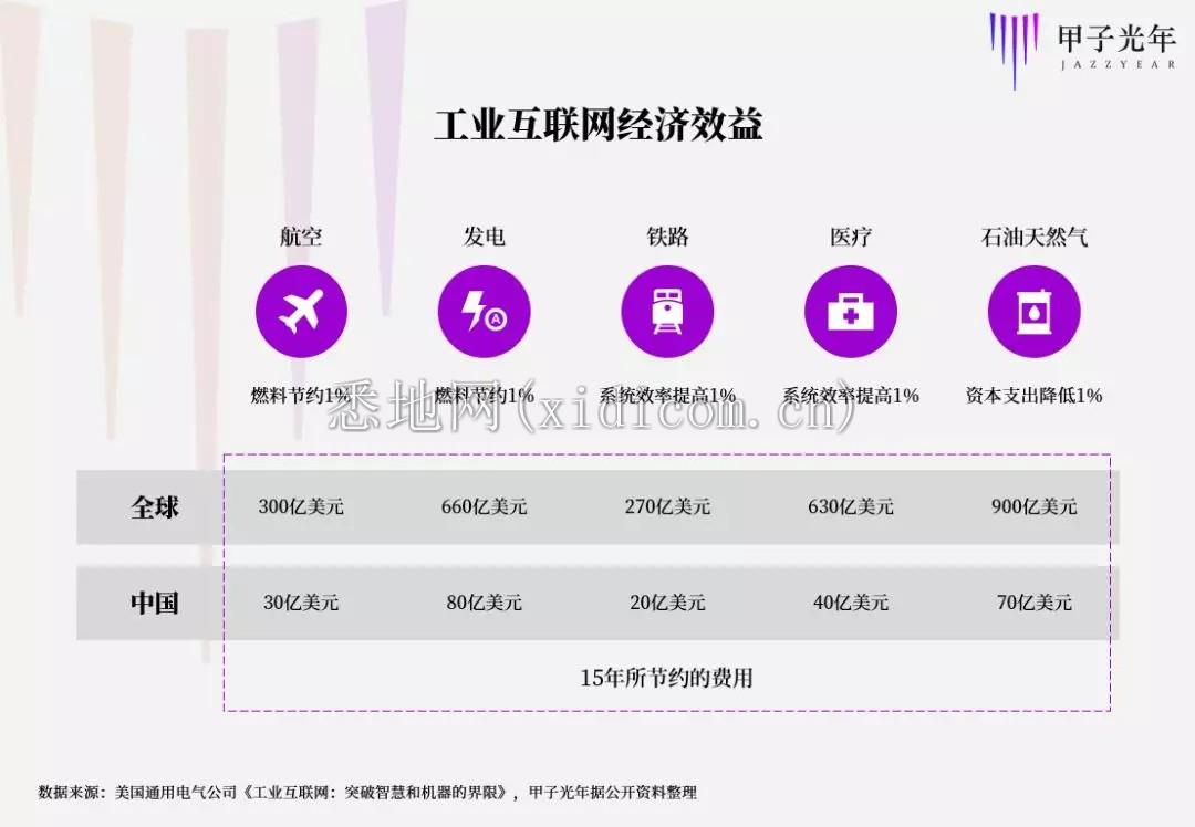 据GE发布的《工业互联网:打破智慧与机器的边界》,在未来15年内,几个关键的工业领域,1%的效率提高将带来巨大的收益。据安信证券计算,工业互联网在工业领域提升1%的效率相当于给我国带来2980亿元的经济增值。