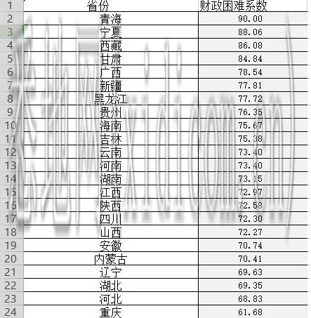 根据第一财经的报道,财政困难程度系数,是根据地方“保工资、保运转、保民生”支出占标准财政收入比重及缺口率计算确定。说的直白点,就是负担最基本的公共服务开支,不同地区的压力有多大。