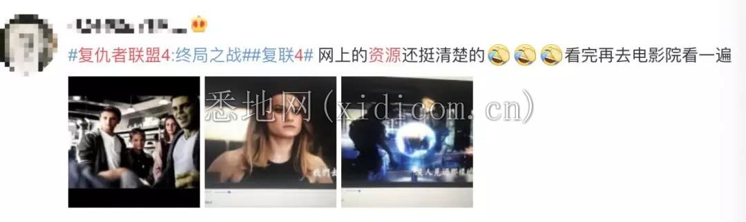 2019年春节档,以《流浪地球》《飞驰人生》《疯狂的外星人》和《新喜剧之王》为首的影片上映不到2日就流出了带着院线贴片广告的高清资源。与春节档不同,当前市面上所流传的《复联 4》资源基本都是盗摄的枪版,画质与拍摄角度双渣。