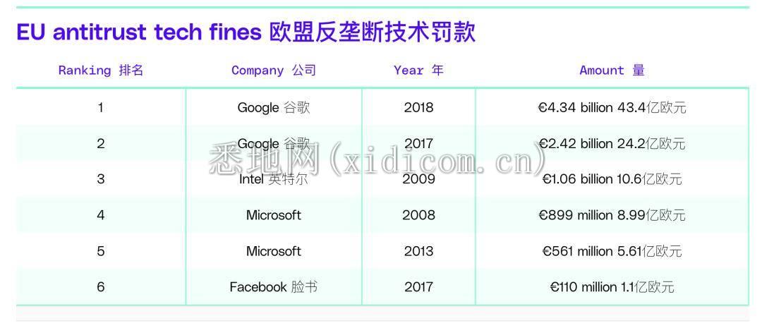 两个法案都是今年生效的,但是欧盟利用垄断、信息安全等罪名罚款,实则向国外科技公司“征收数据税”的操作,已经运行多年了。