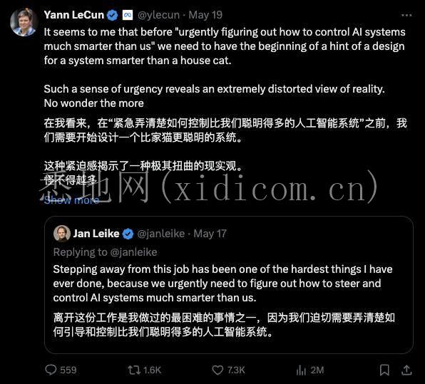 最近一段时间热议的OpenAI超级对齐团队人员离职,引发对AGI安全问题的隐忧的事件中,LeCun也没有缺席。