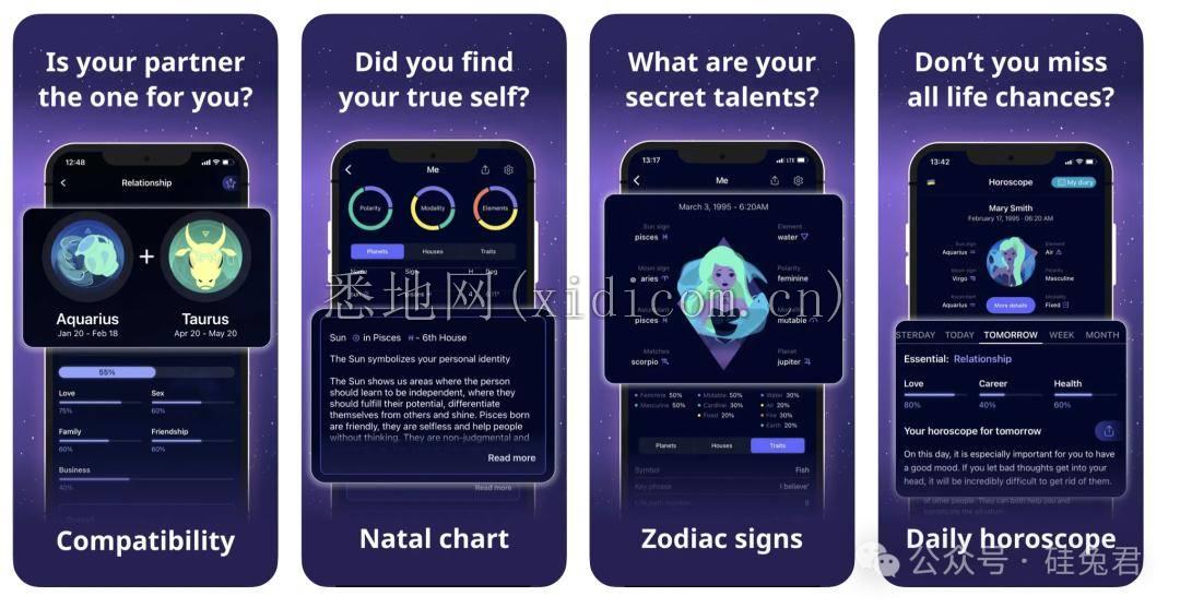 Co-Star的核心功能是用AI技术根据用户的出生年月日和地点来生成每个人独一无二的占星解读,还应用了NASA的数据来创建每位用户出生时整个太阳系的地图, 用户每天可以解读自己的星座运势甚至是与他人的关系。