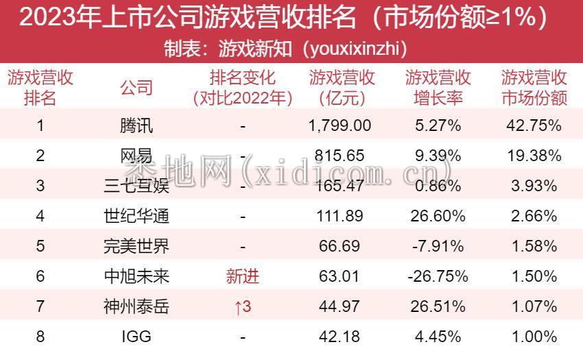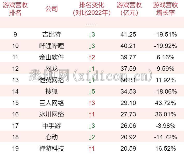 在这之中,游戏业务收入达到市场总份额的1%的公司有8家,比去年减少了1家。但在这8家头部公司中,游戏收入实现增长的公司有6家,去年则只有3家。至少这些大厂已陆续找回了正常的增长节奏。