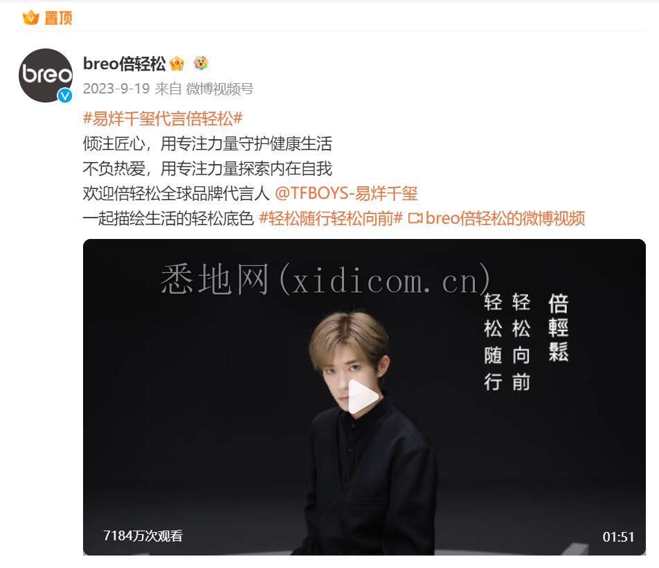 时代周报记者注意到,去年9月19日,倍轻松官宣,由当红艺人易烊千玺担任其全球品牌代言人。