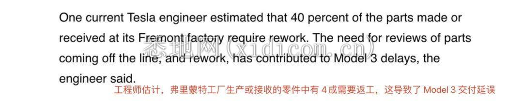 同时这座工厂生产的车辆缺陷比例高得惊人,有工程师预估,弗里蒙特工厂生产或者外包的零件中有40%需要返工。