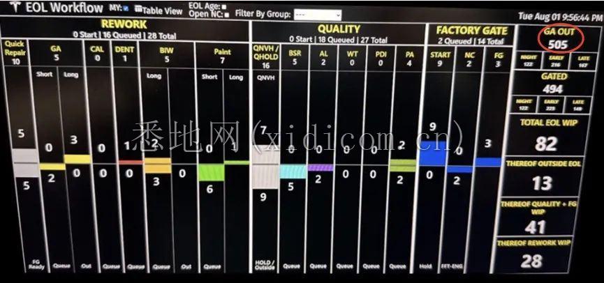 到2022年柏林工厂迎来投产,却也是产能提升最艰难的阶段,比如下面这份流出的内部文件就显示,柏林工厂去年8月单日出厂车辆仅有505辆,比计划的870辆少了365辆,而且类似情况还不少。