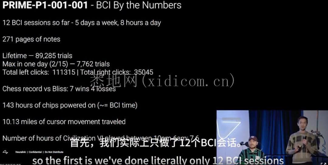 Neuralink 还在这次见面会上透露了一些试验信息,包括他们做了 12 个脑机接口(BCI)会话,Noland 借助 BCI 设备象棋对弈 7 胜 4 负、一天玩 7.6 小时《文明 6》等等。