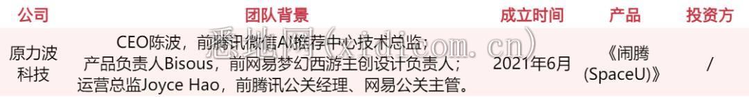 北京原力波科技(曾用名:北京达不溜科技)是一家围绕AI、区块链技术的元宇宙创业公司,团队既有从事AI领域超过12年的资深人士,也有参与过游戏大厂重要项目的从业者。此前公司上线了一款结合AI的虚拟场景社交应用《Node闹腾》,后者于2022年10月更名为《SpaceU》,并宣称「全新起航」。