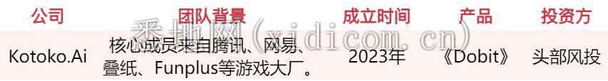 Kotoko.AI(上海织时律)是在去年拿到头部风投的融资后才设立的,规模在20人左右,成员来自腾讯(天美、光子)、叠纸、FunPlus等游戏大厂。团队正在结合AI开发一款社交MMO游戏《Dobit》,采用欧美卡通二次元画风,核心玩法为角色养成与沙盒模拟,并带有AI角色创建系统,可提供「赛博养崽」的体验。某种程度上相当于游戏版的「Character.AI」。官方已于近期在海外众筹网站kickstarter上架了游戏页面。据称这款产品将优先上线海外,alpha版本预计在2024年发布。