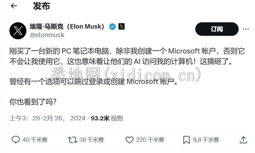 马斯克和微软过不去,已经不是第一次了,买台新电脑都要喷一嘴微软。