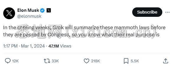 2月22日,马斯克曾发文表示,自己的Grok与目前的比较突出的OpenAI、Gemini不同,Grok可以把人类带向光明的未来。