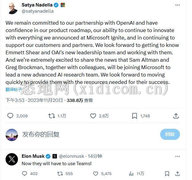 马斯克在twitter嘲讽到:“微软将会成为AI时代的上帝!”