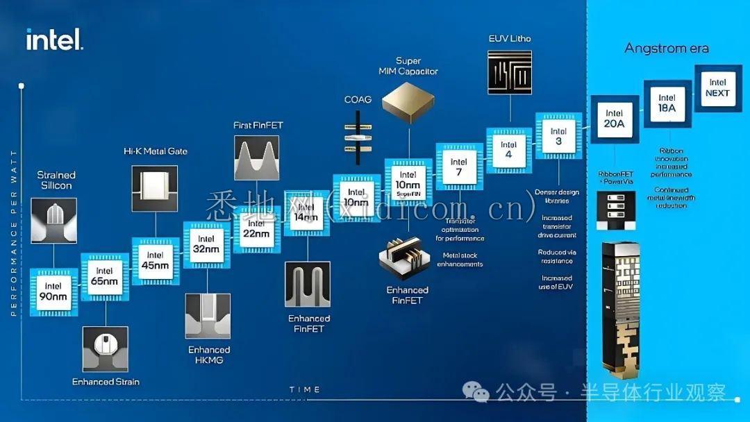 英特尔正在从传统的FinFET工艺快速发展到基于全环绕栅极(GAA)晶体管和BSPDN(背面供电网络)技术。
