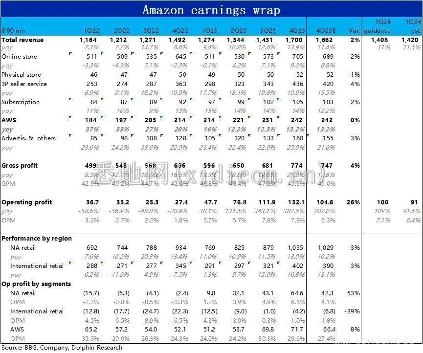至于对 24 年全年零售业务的增长前景,以及 AWS 中期内增速抬头的幅度和节奏,这两个市场左右公司中期走势,可以关注电话会中管理层有无做出解答。