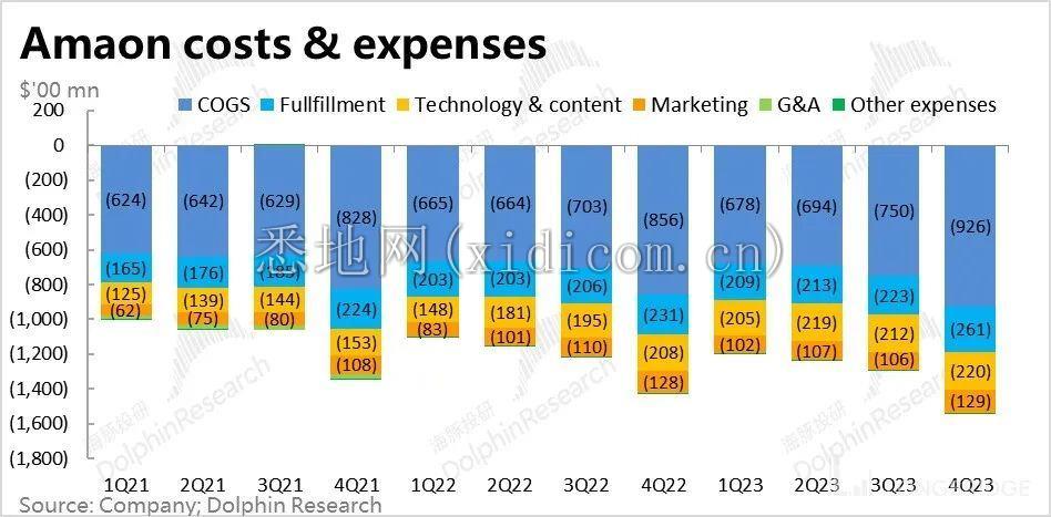 分业务来看,主要是广告收入增长依旧保持强劲,增速高达 26.8%。海豚投研认为,一方面这是是广告投放预期往效果广告倾斜趋势的延续,另一方面公司近期也宣布了在 Prime Video 流媒体上提供电视广告的业务,有望继续驱动广告收入的增长。