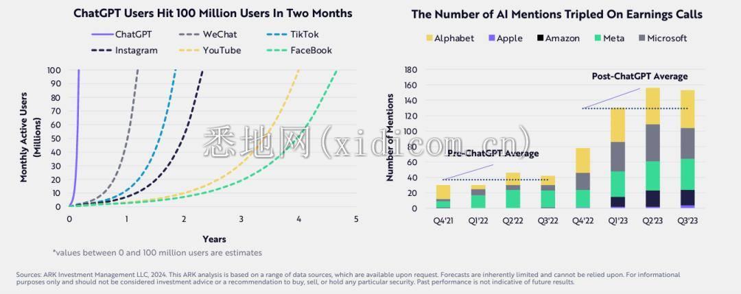 这张图表被认为很有可能是对2024年AI发展做出了预测,并被视为2024最重要的AI图表之一,正是出自方舟投资。
