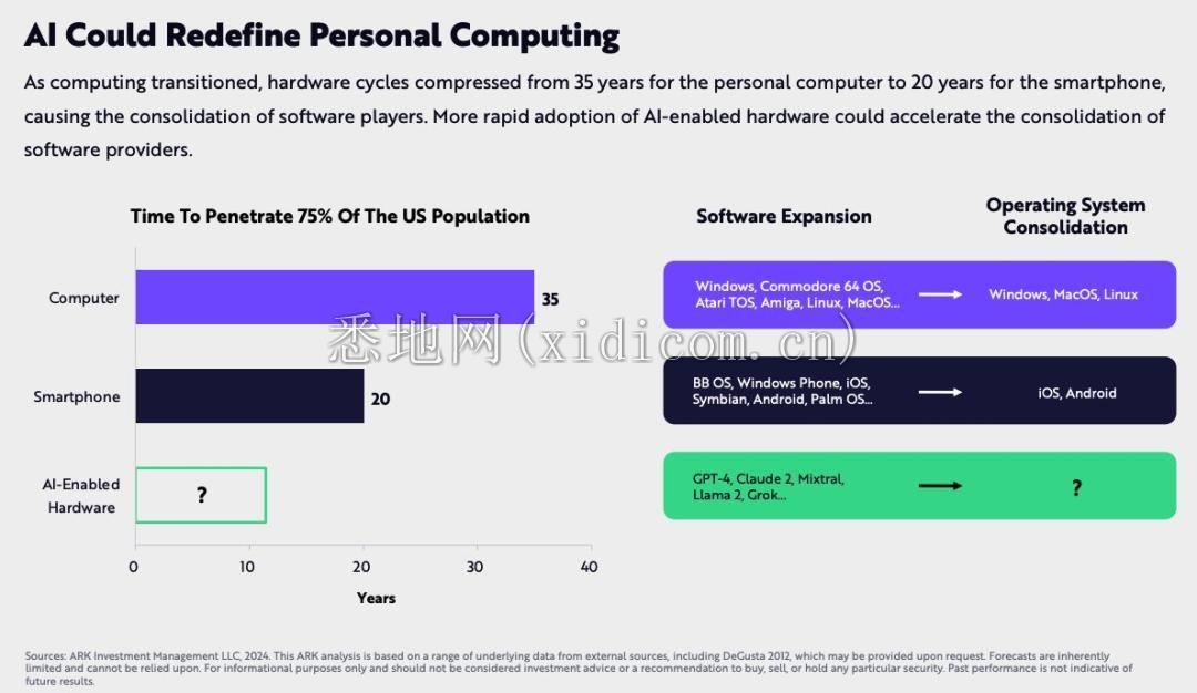 硬件采用时间可能会继续下跌,新的 AI 硬件设备必将出现,并在未来几年内彻底改变移动计算格局。AI 已经存在于我们的日常生活中, 渗透 75% 的人口需要多长时间?