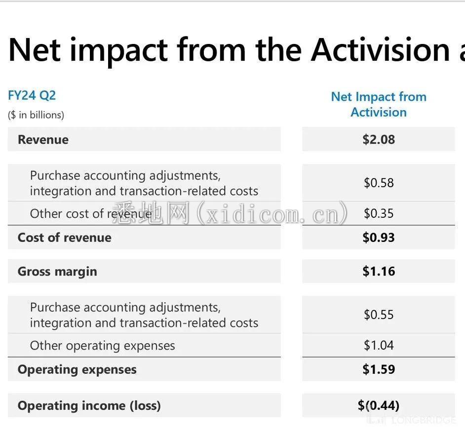 只有个人计算板块的经营利润环比减少了约 9 亿,也明显低于预期。其中,并表动视暴雪就产生了约 4.4 亿的经营亏损,是主要原因之一。