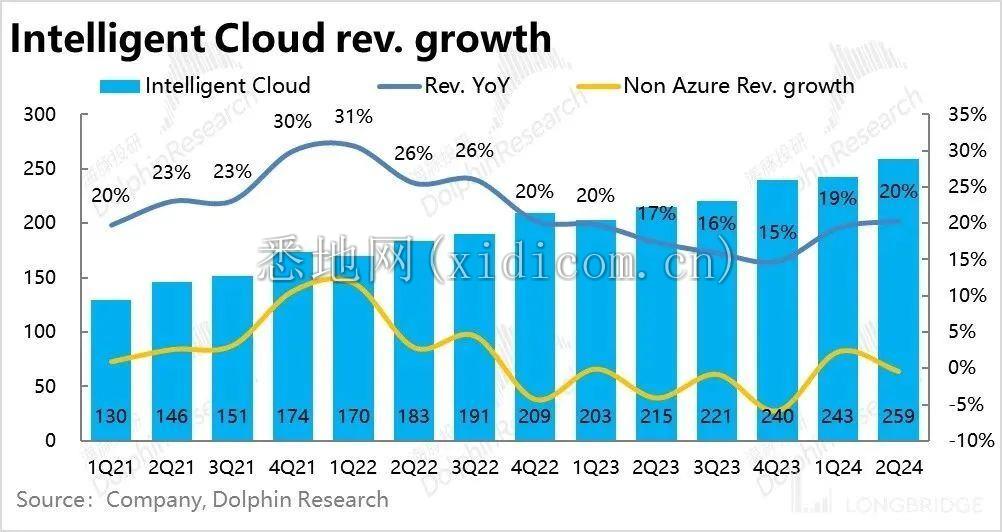 整体上,在 Azure 的贡献下智慧云板块的名义增速也提升了 1pct,实际增速则为 19%。整体实现营收 259 亿美元,略微高于公司指引和市场预期的 253 亿。