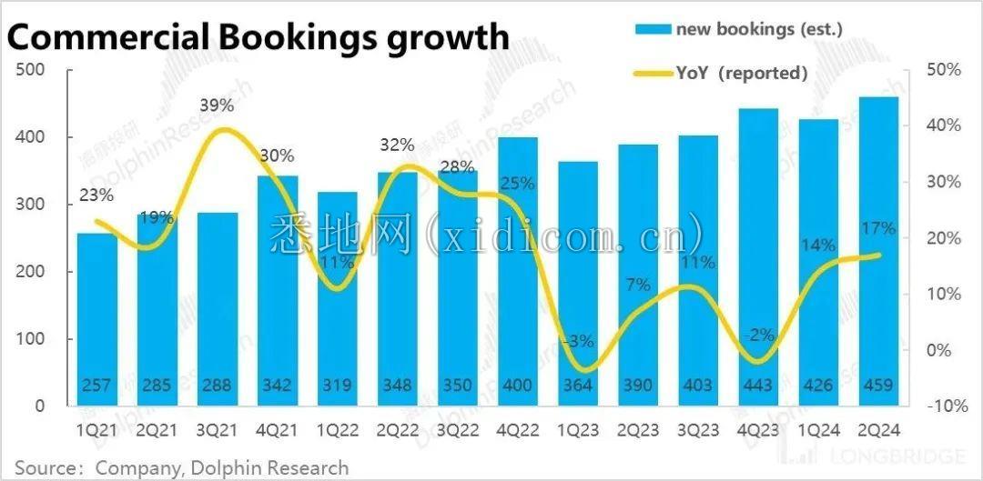 而反映当季增量的新签企业业务合同金额,虽然名义增速看起来增长了,据公司披露剔除汇率影响后的实际增速从 17% 放缓到了 9%。
