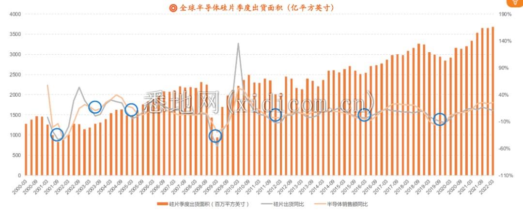 在2020和2021这两年里,全球芯片市场火爆,供不应求,晶圆厂产能吃紧。这种供需关系不断向产业链上游转移,特别是制造芯片最重要的半导体材料——硅片,在晶圆厂产能爆火的那个时段内,硅片也水涨船高。