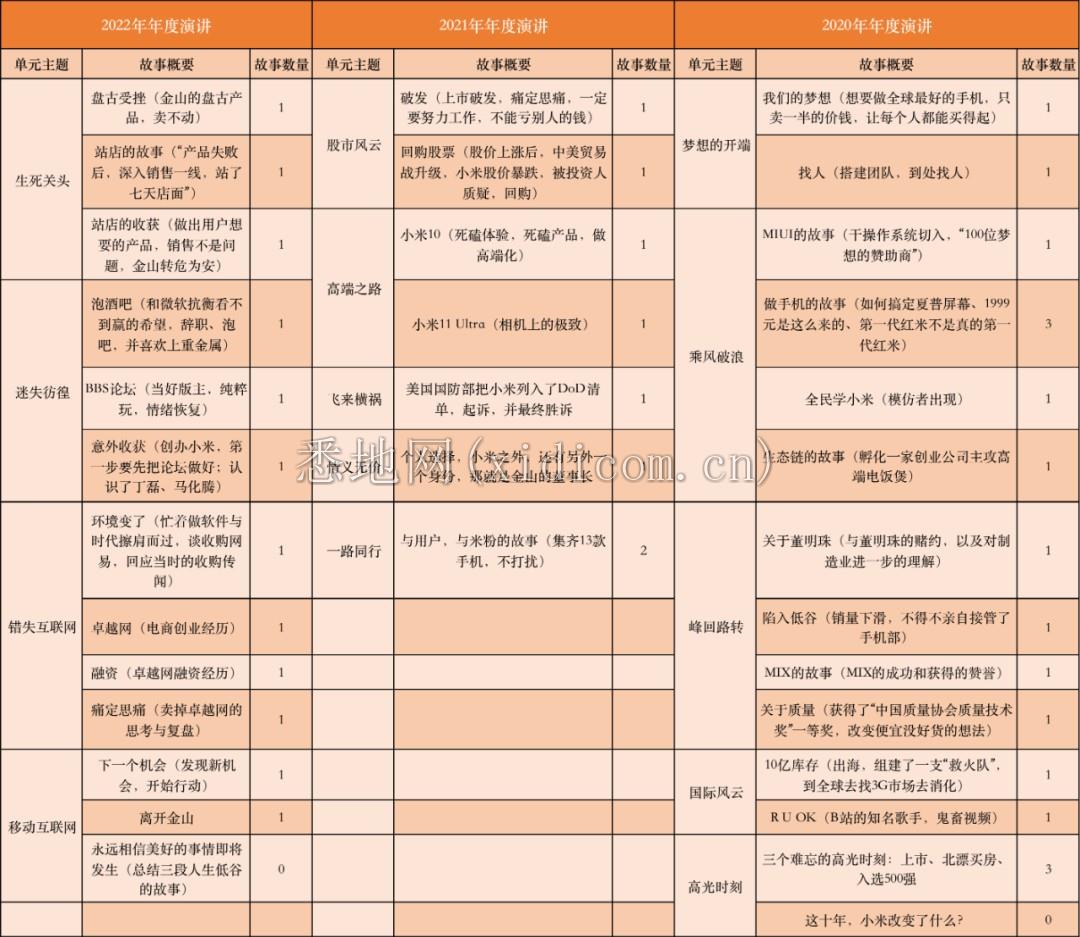 在过往的3次年度演讲中,雷军共用了37个故事,阐述了14个与小米、金山和个人成长蜕变有关的人生经历。