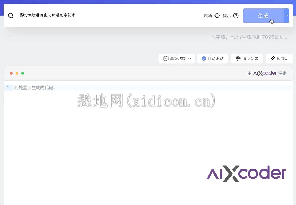 比如输入文字“将byte数组转化为16进制字符串”,系统就会自动生成与之对应的方法级源代码,程序员可以直接取用,或者根据具体的需求对代码进行再修改。