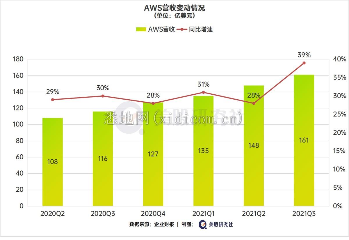 AWS云服务已经成为亚马逊的增长极,也是唯一超过预期的部分。三季度AWS营收161.1亿美元,同比增长39%,超过市场预期的154亿美元。亚马逊总营收的近15%、经营利润的101%来自AWS——如果没有云服务的高利润率支撑,亚马逊本季度利润率将转负,原因是成本的全面上升。