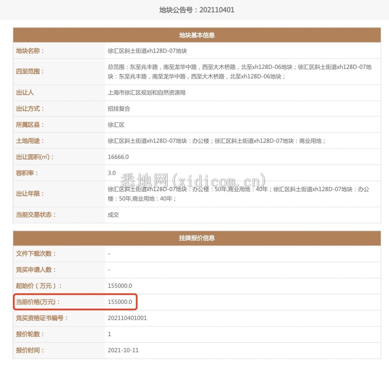 谧空间(上海)信息科技有限公司竞得地块,图源上海市规划和自然资源局网站