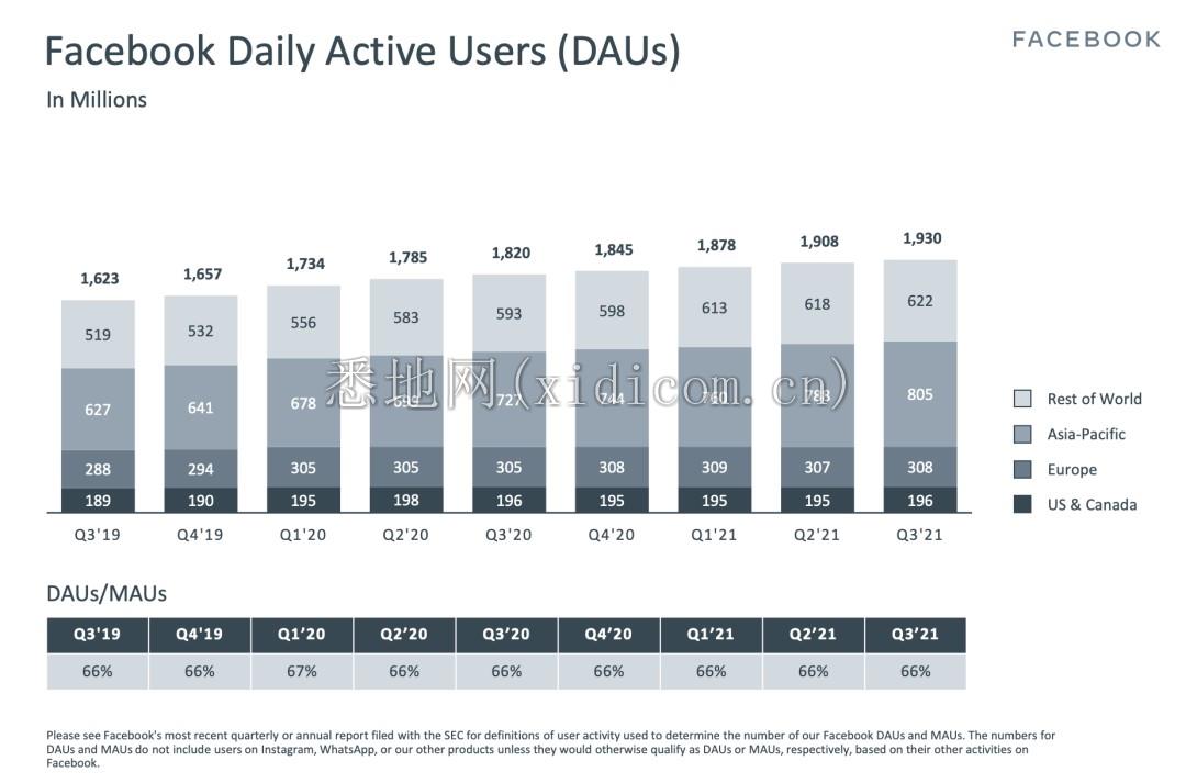 Facebook主平台日活跃用户(DAU)同比增长6%,达到19.3亿,月活跃用户(MAU)同比增长6%达到29.1亿;